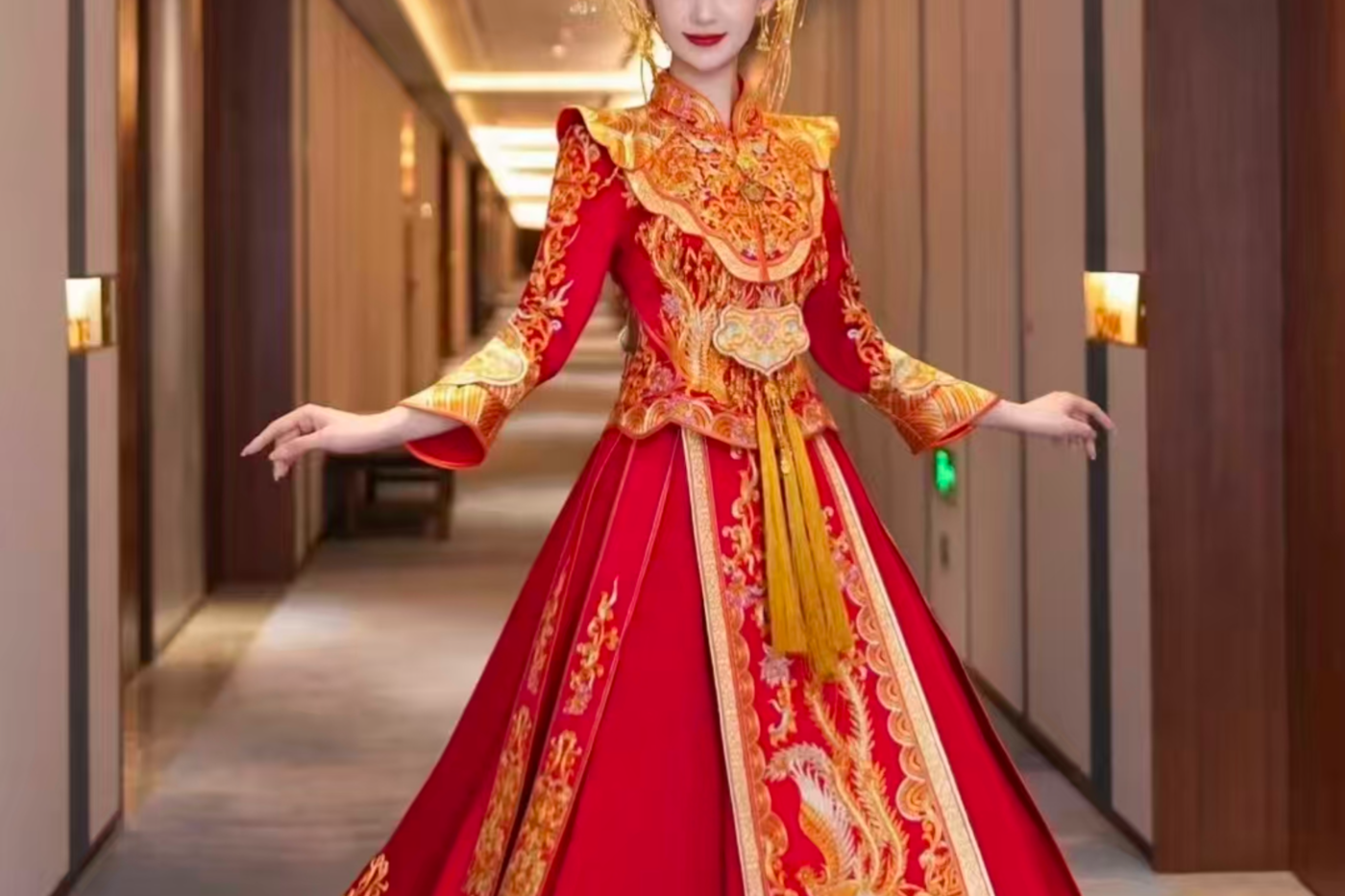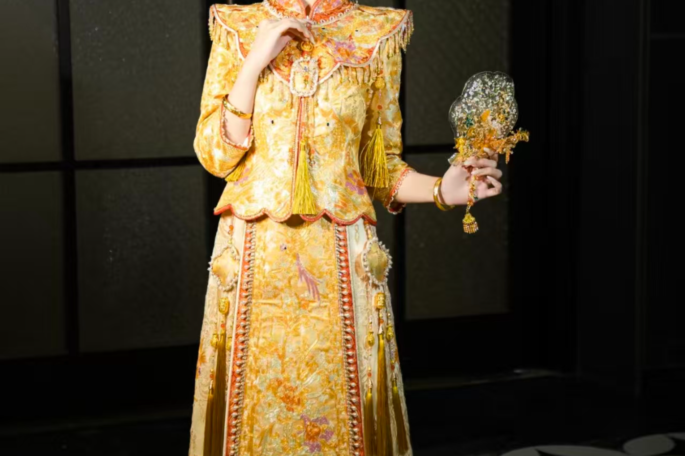 天玺嫁衣 [庆晏.雅彤] 牡丹锦簇,鱼尾化为翅膀, 欣悦芊行凤临吉祥,康泰纳入宝瓶,富贵晏宁 大红醋酸缎秀禾, 绣金鱼百合,牡丹云水, 寓意:金玉满堂,花开富贵,吉祥如意[更多…]