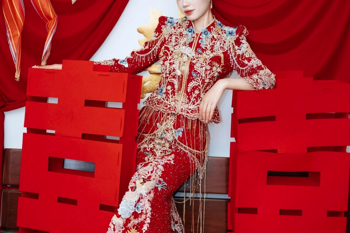 新款红色马来 红色中式也可以这么灵动!! 红色马来褂搭配银色流苏 精致的龙凤图案跃然衣上 寓意吉祥与幸福 独特收腰设计凸显新娘纤细腰身 行走之间流光溢彩仿佛将璀璨星河穿在身上[更多…]